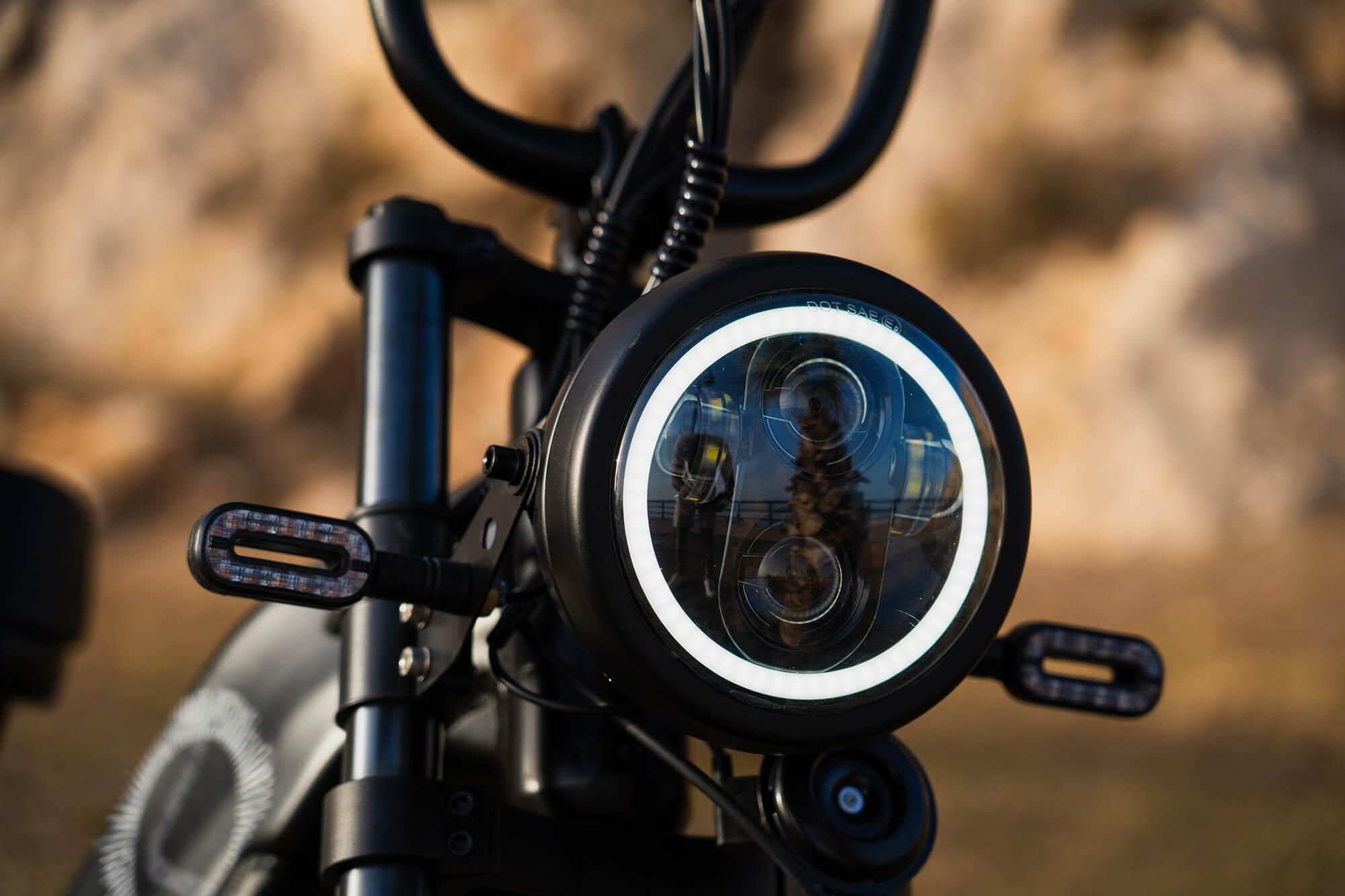 Ride with confidence and style. The Scout Pro has built-in turn signals for added safety and oversized headlights that not only light your way, but also make a bold statement. With full suspension and fat tires, this eBike is not just a ride, it's a lifestyle. Elevate your rides with the Cyrusher Scout Pro.