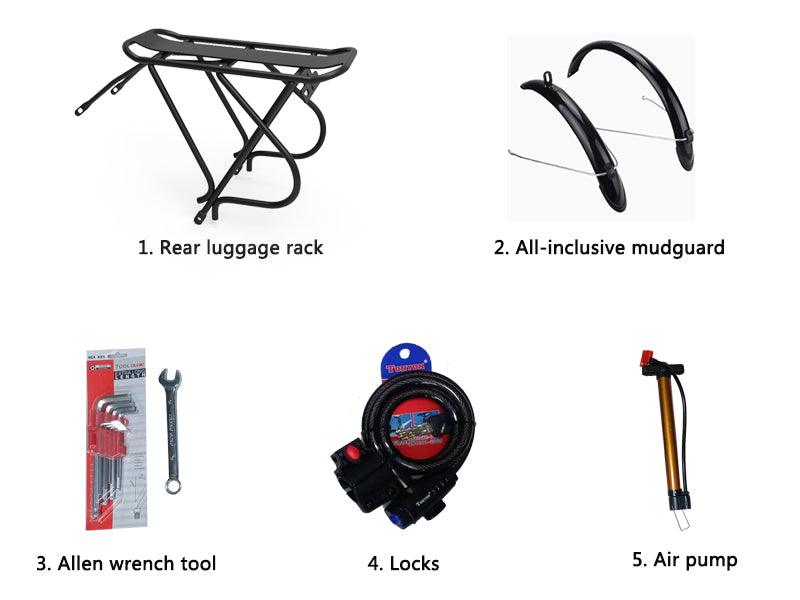 • Shimano 7-Speed Gears: Adjust the Shimano 7-speed derailleur to switch gears smoothly and adapt to varying road conditions. With Shimano TX50 shifting levers and TZ20 rear derailleur, gear changes are quick and responsive, perfect for uphill climbs or downhill coasting.