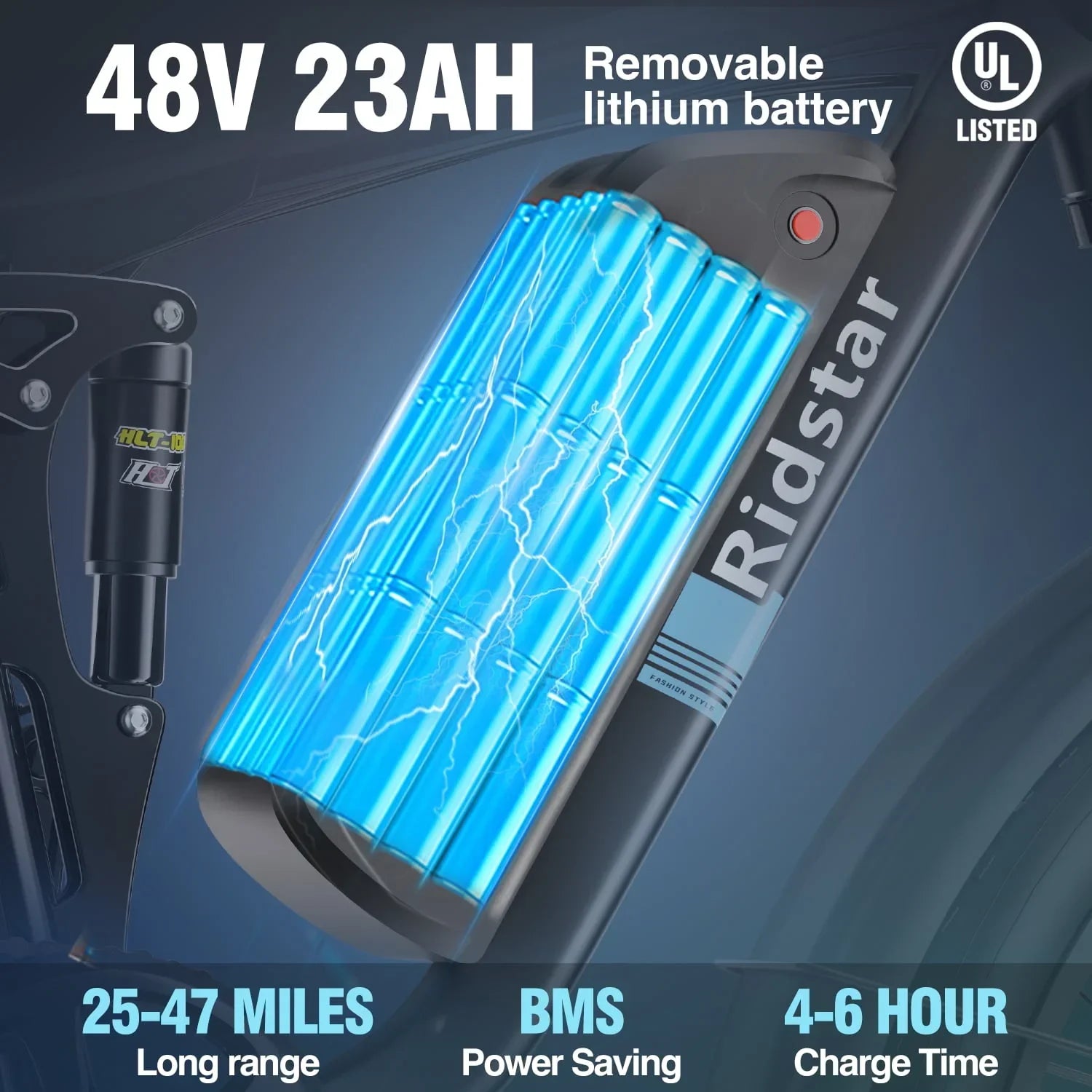 The Ridstar E26PRO Electric Bike is equipped with a substantial 23Ah battery, which offers a generous capacity for extended rides. This battery allows the E26PRO to achieve a maximum range of 40 to 50 kilometers in pure electric mode, making it suitable for longer commutes or recreational rides. In auxiliary mode, where the motor assists the rider’s pedaling, the range extends to 60 to 75 kilometers. This versatility allows riders to choose the mode that best suits their needs, whether they want to rely entirely on electric power or conserve battery life by pedaling with assistance.