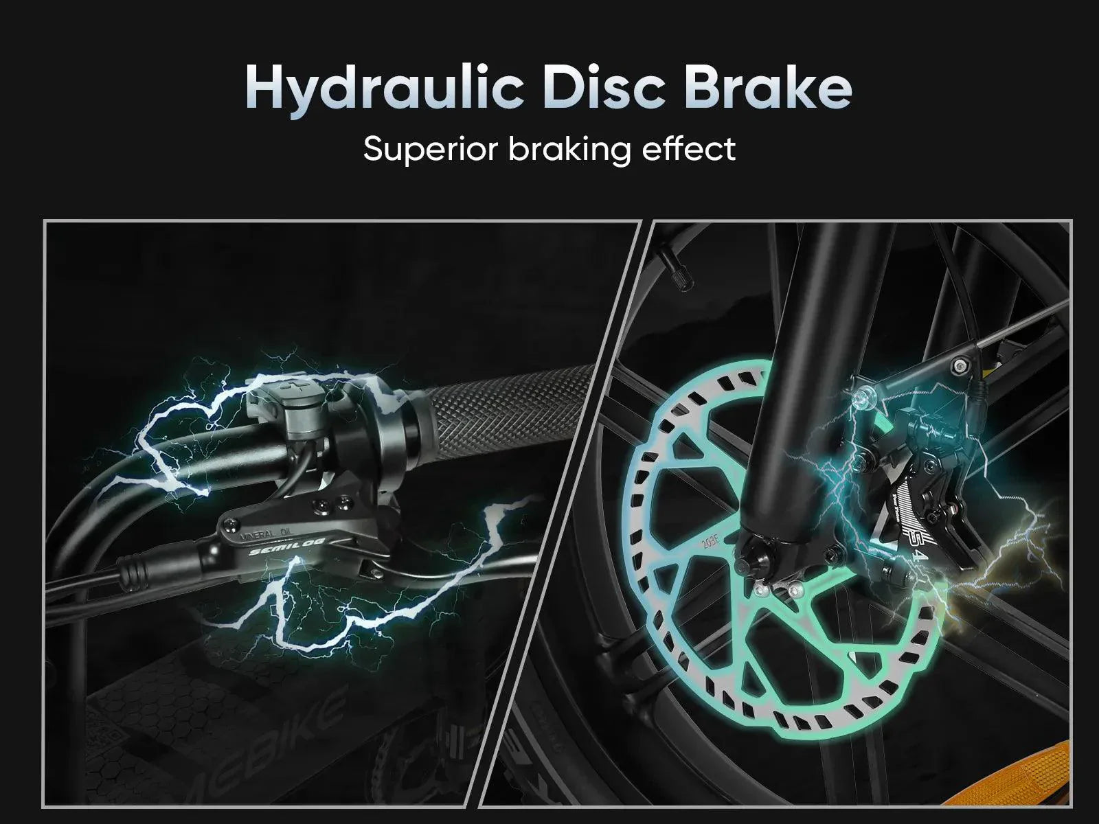 50% shorter braking distance comparing to mechanical brakes to enhance your riding safety, stability, and steering.