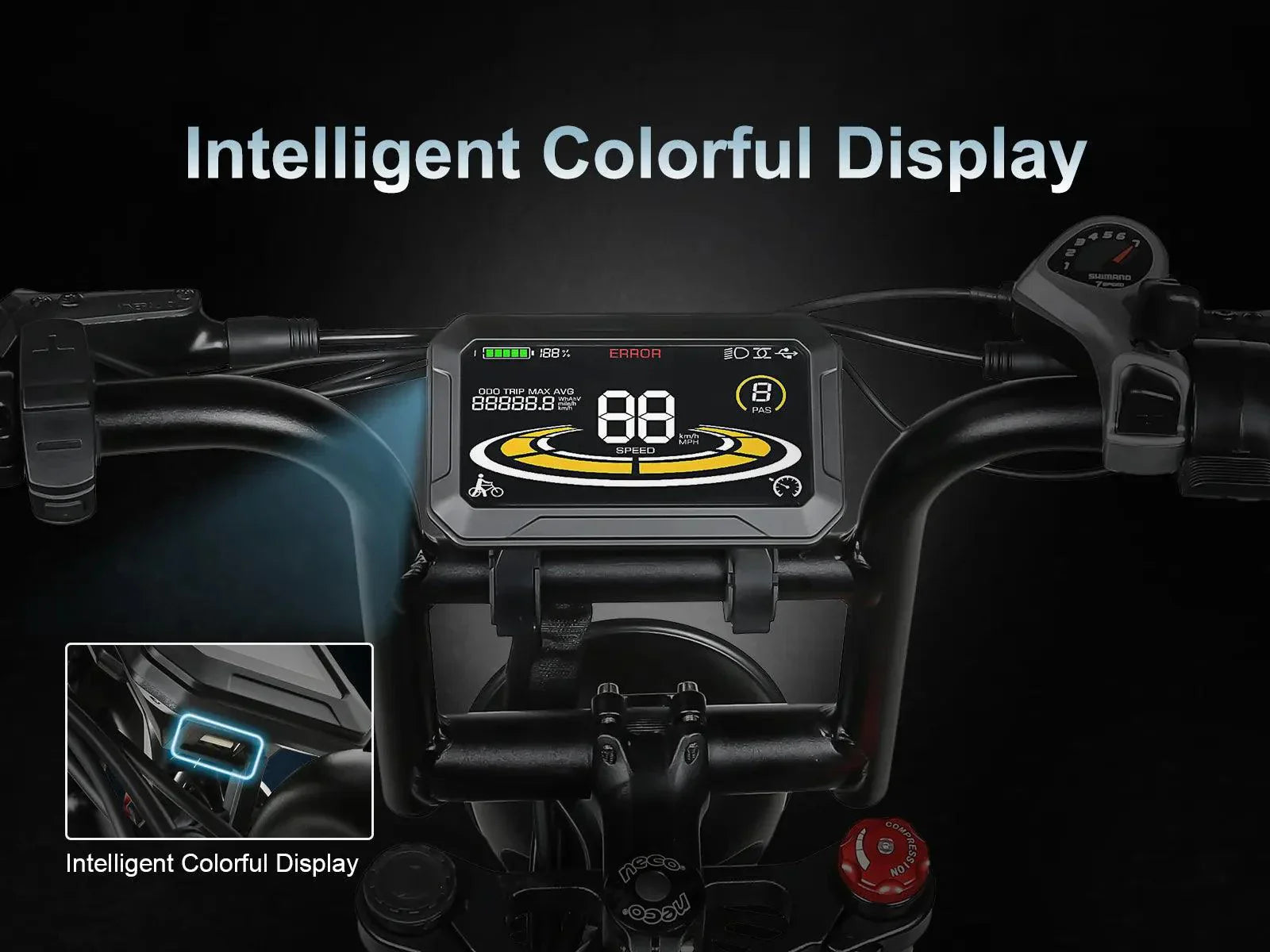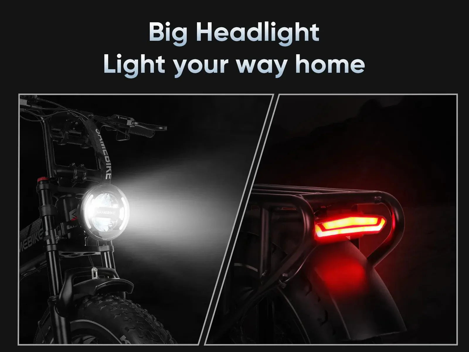 Tackle all terrains with ease on the 20-inch fat tires, providing superior stability and grip, making every ride a breeze.