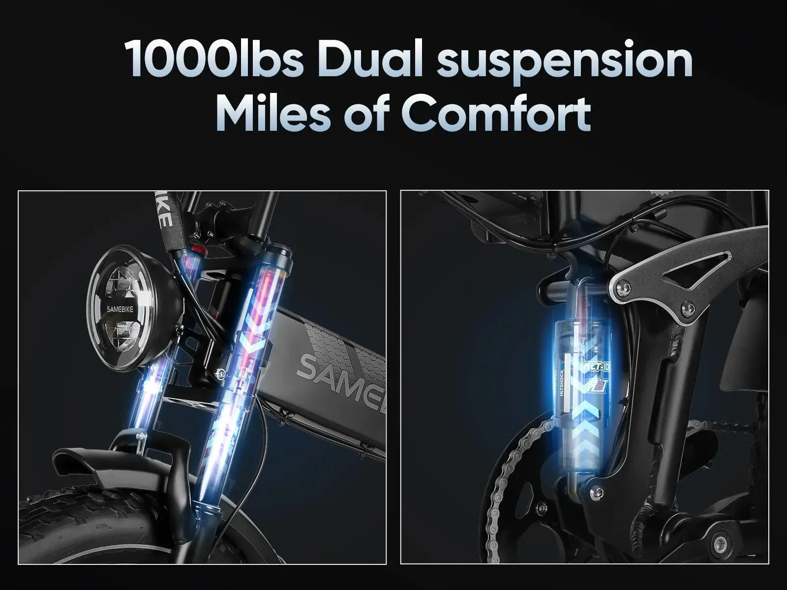 The fork and rear suspension minimize roadside bumps and greatly improve riding comfort.